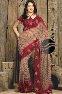 Its a new and latest Indian Night dance party wear saree with beautiful and glamorous Saree blouse style in short sleeve. This saree is in Maroon color and Silk style. The Saree pallu has beautiful wider liens border and saree lehnga is also decorated with new motif designs and saree lehnga has also a beautiful drape style.
